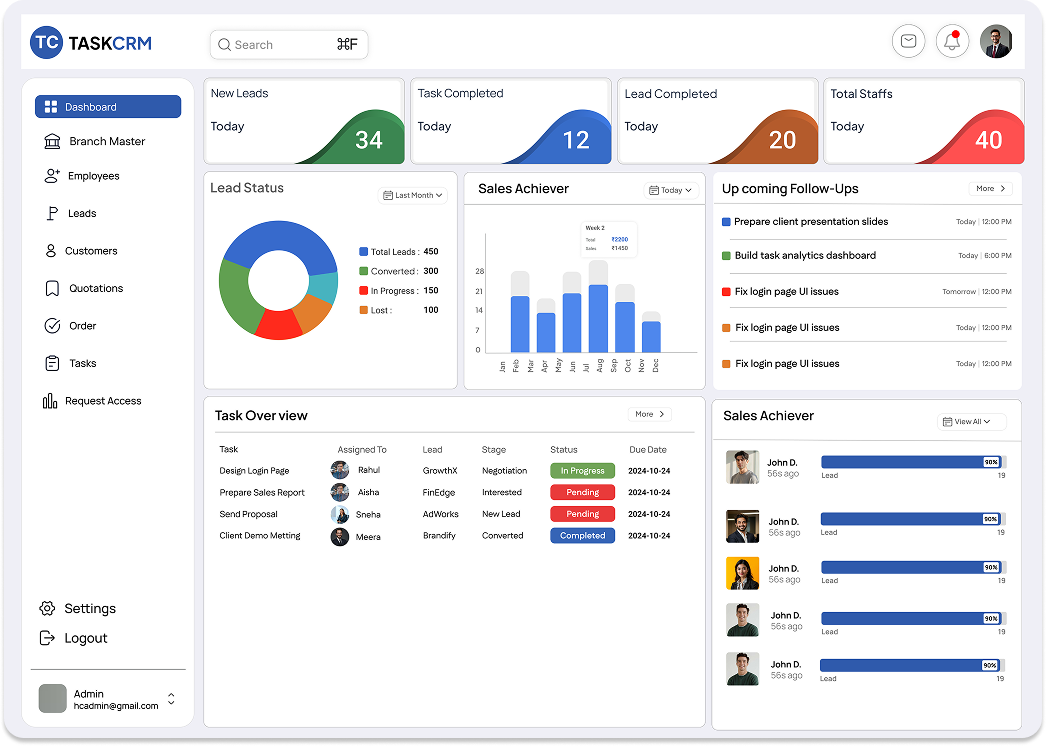 Access your personalized workspace where all assigned tasks, leads, and updates are organized in one place for quick visibility.