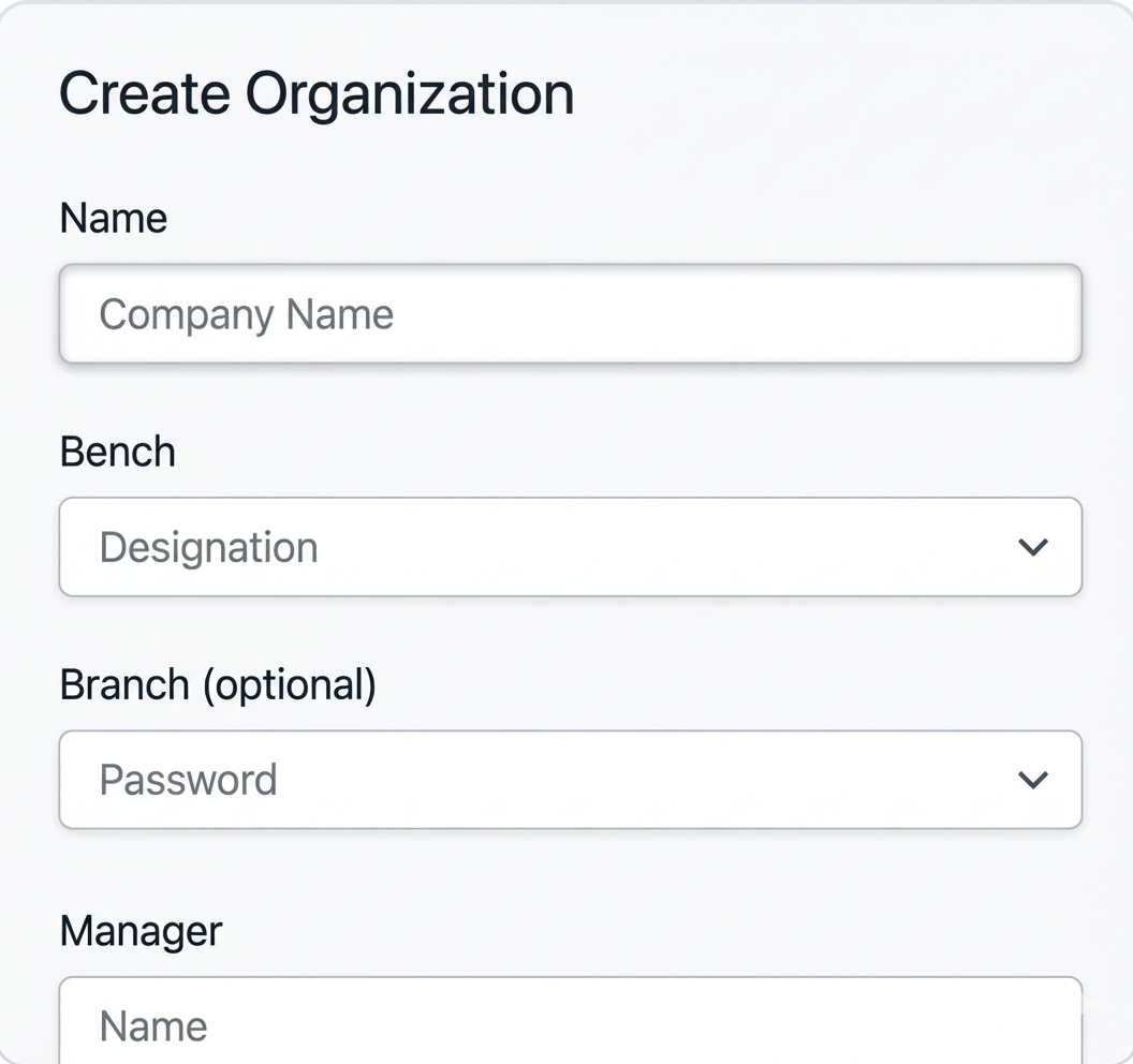 Set up your company, branches, and structure in minutes.